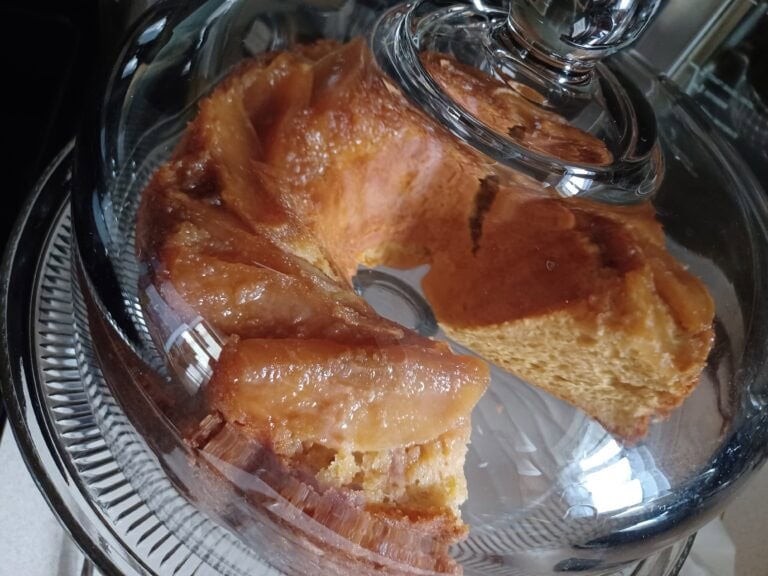 - Leave the bundt pan upside down for a minute or two to give the the glaze a little more time to drip down. You may still have a bit of brown sugar in your pan- that it okay!