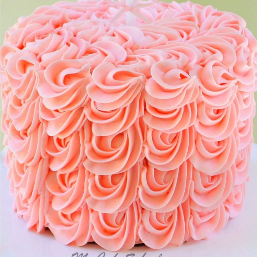 After crumb coating my cake with vanilla buttercream, I used a Wilton star tip 21 (one of my faves) to do a reverse shell pattern with my medium consistency buttercream. I always love a nice reverse shell border, but I now like them even better when piped vertically! You can see that I staggered mine a bit so that neighboring lines fit nicely together. Is it just me or does my cake look like it’s wearing a snuggly buttercream sweater?! :0)