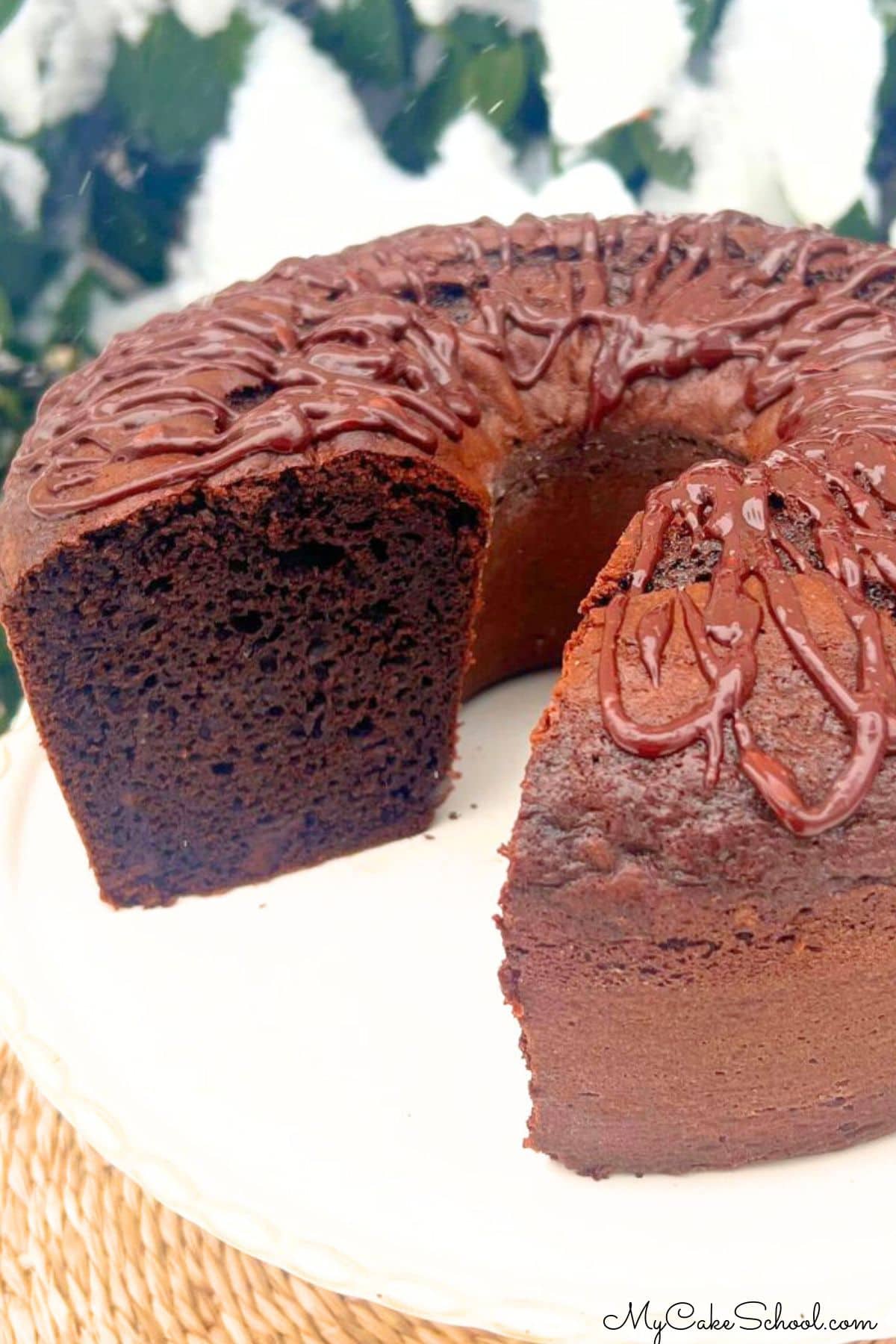 - Spoon the chocolate ganache glaze over the top, or drizzle it using a piping bag or ziplock bag with the tip snipped away.