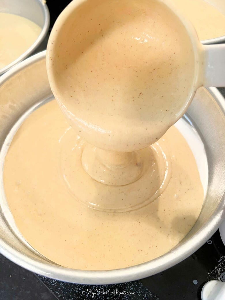 - Prepare Cake Pans: Grease and flour three 8x2 round cake pans.
