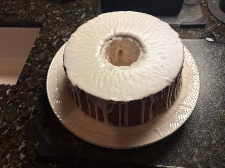 - Once the cake has cooled, you can spoon the glaze over the cake, or for more control, you can spoon it into a disposable piping bag with the tip snipped away.