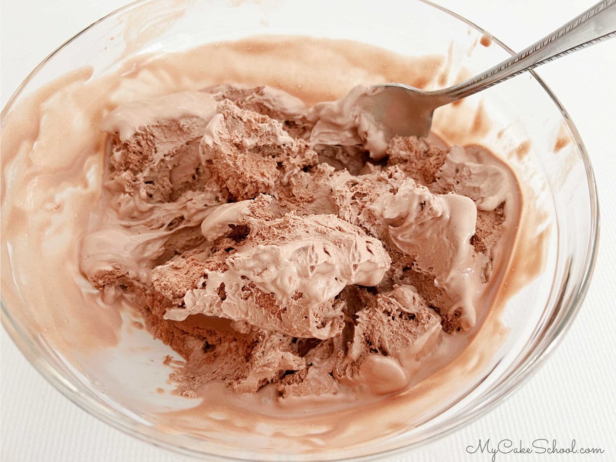 - Scoop the Chocolate Ice Cream into a large bowl and mash with a spoon to soften. Allow to soften for a few minutes or until it can be easily spread. (We leave the other carton of ice cream in the freezer until we are ready for it.)
