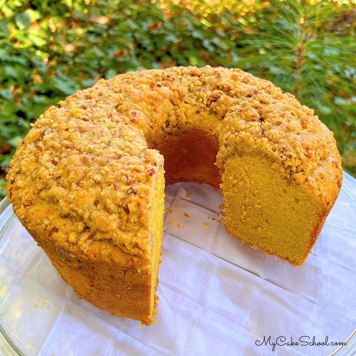 Moist and flavorful spice cake with a pecan streusel topping! So delicious any time of year but I love it for fall gatherings!