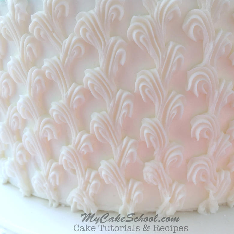 We are also demonstrating a beautiful piped buttercream design around the sides of the cake. This piping looks much more difficult than it actually is, and can be applied to cakes for any special occasion!